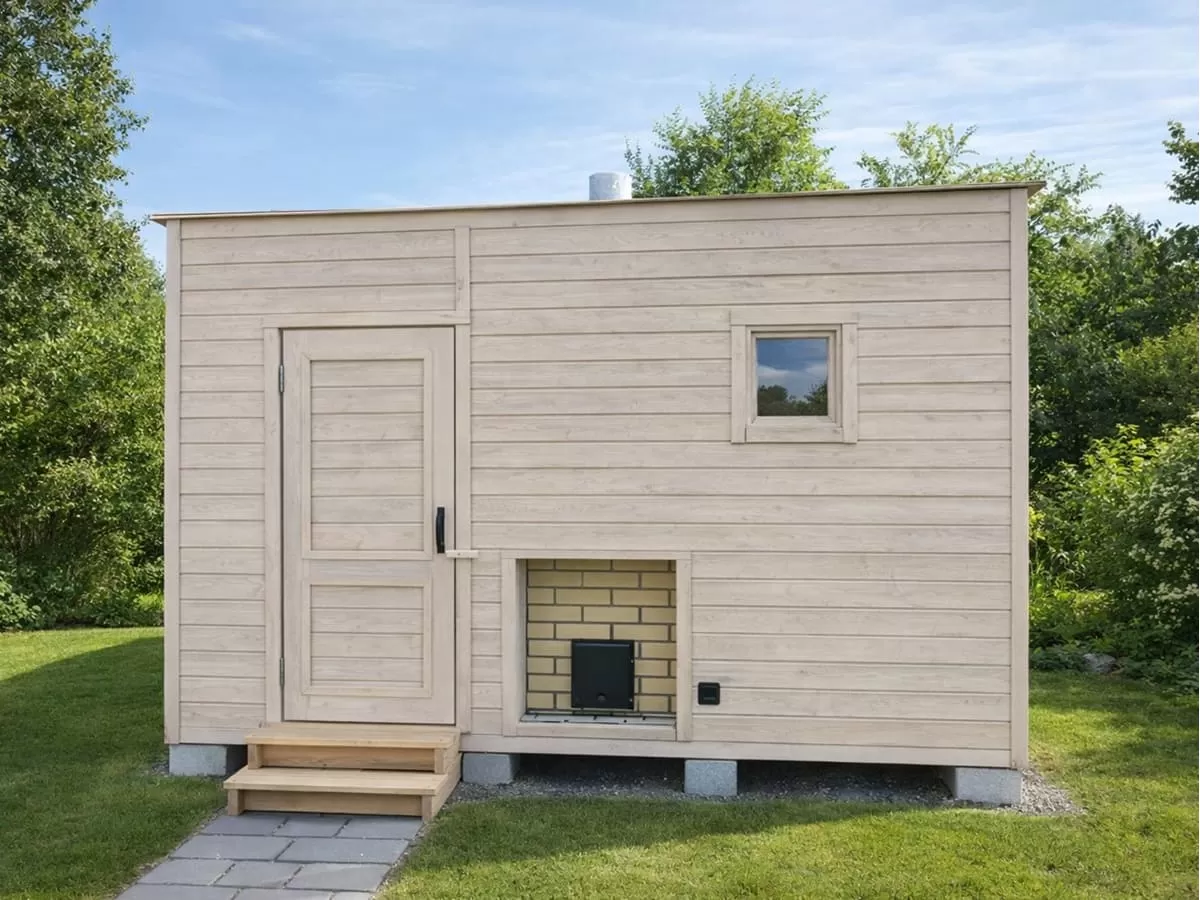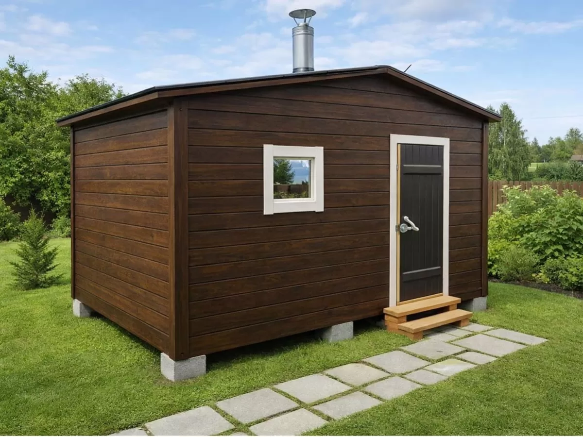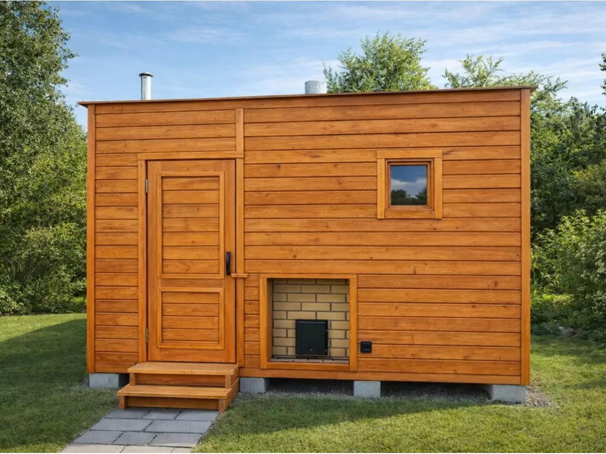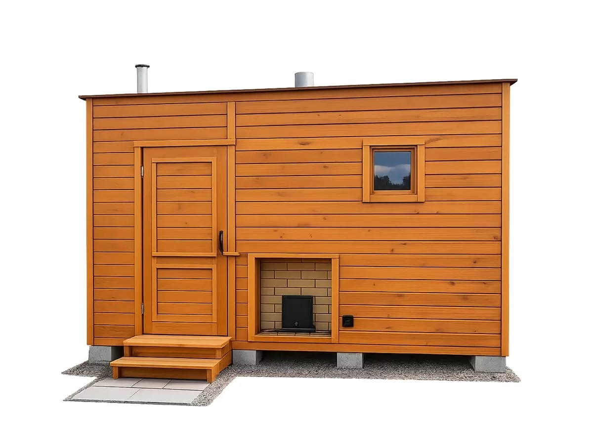 Небольшие габаритные размеры позволяют разместить такую баню даже на ограниченной площади, сохранив комфорт и функциональность в повседневном использовании.